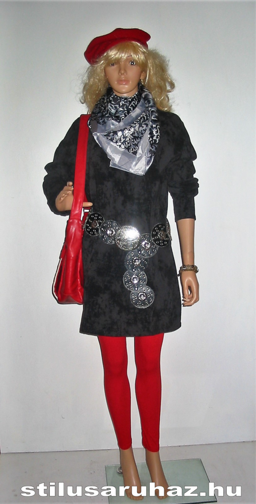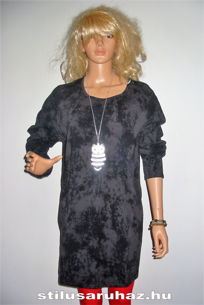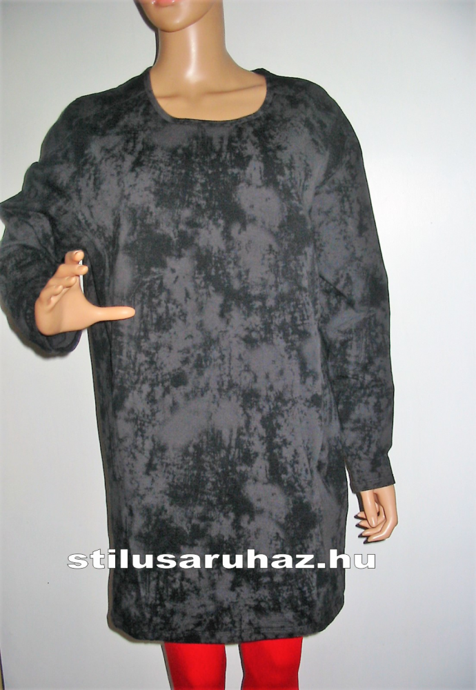 Kényelmet és kellemes meleget nyújt a szürke alapon fekete foltszerű mintákkal telehintett, fönt bővebb, alul szűkebb fazonú, több részből szabott, elöl kenguru zsebbel készült, fekete-szürke színű hosszított felső. Hordhatod lazán, sportosan, de ha kedveled a kiegészítőket, akkor a fekete-szürke hosszított felsővel nagyon egyedi, szemet vonzó szetteket állíthatsz össze, aminek csak a képzeleted szab határt (lásd a fotókon!). Párosíthatod leggingsszel, de önálló ruhaként, színes harisnyanadrággal és csizmával is remekül megállja a helyét. Tehetsz hozzá mutatós övet, amivel a bőségét, sőt kis mértékben a hosszát is tetszésed szerint állíthatod be.