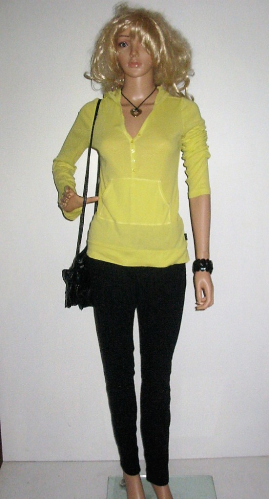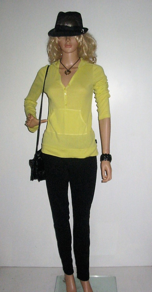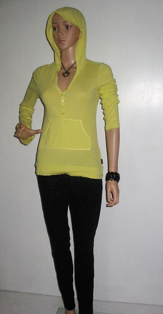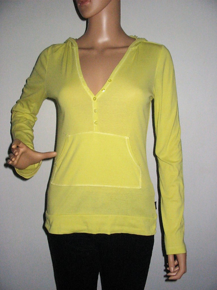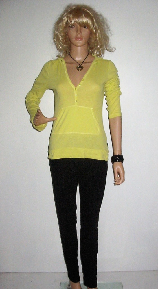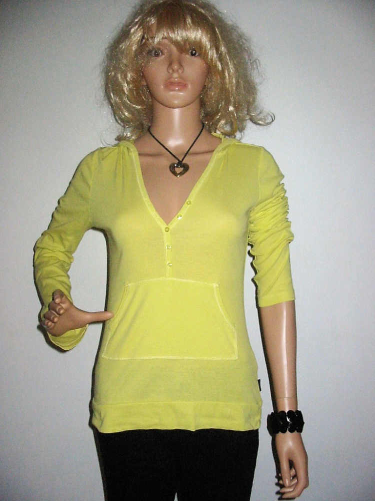 Fiatalos lendület, vidámság és a napfény melege hatja át a citromsárga színű, 100% pamutból készült Only Basic kapucnis felsőt. A felső színével megegyező apró gombokkal szabályozható ,,V”- alakú nyakkivágás, a kenguru zseb és a kapucni igazi sportos külsőt kölcsönöznek a felsőnek.