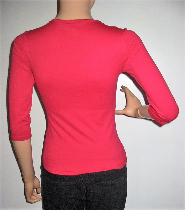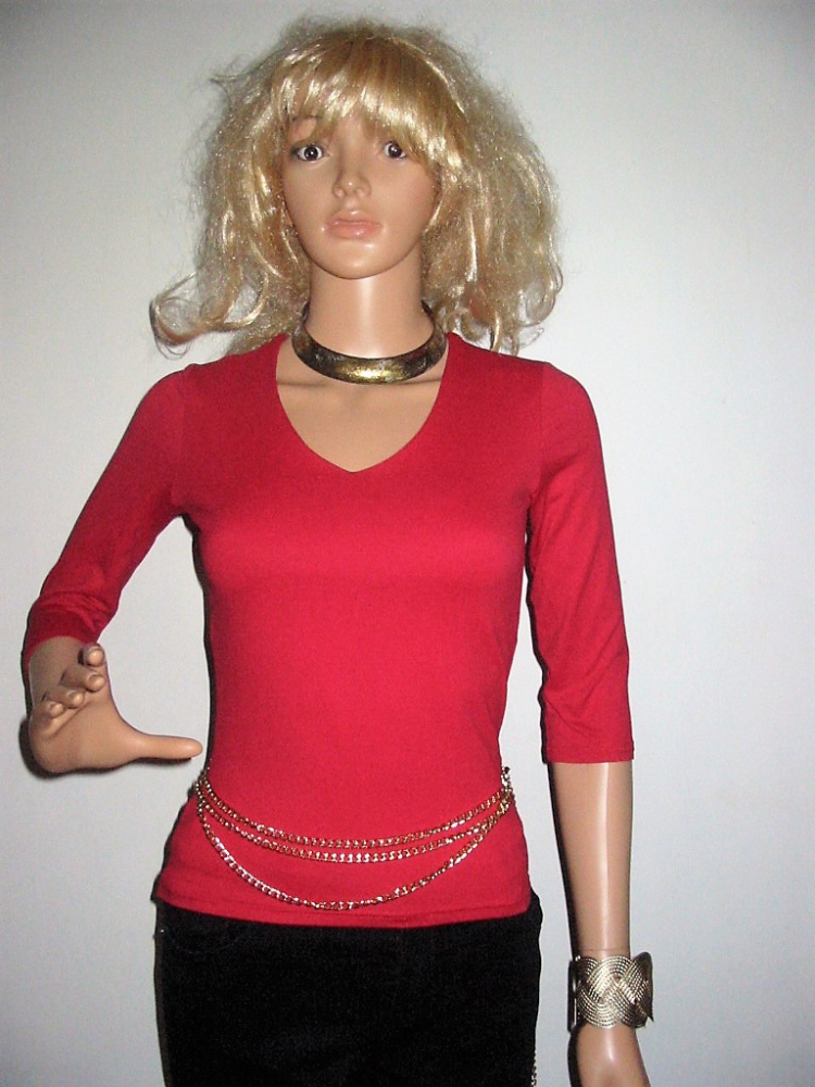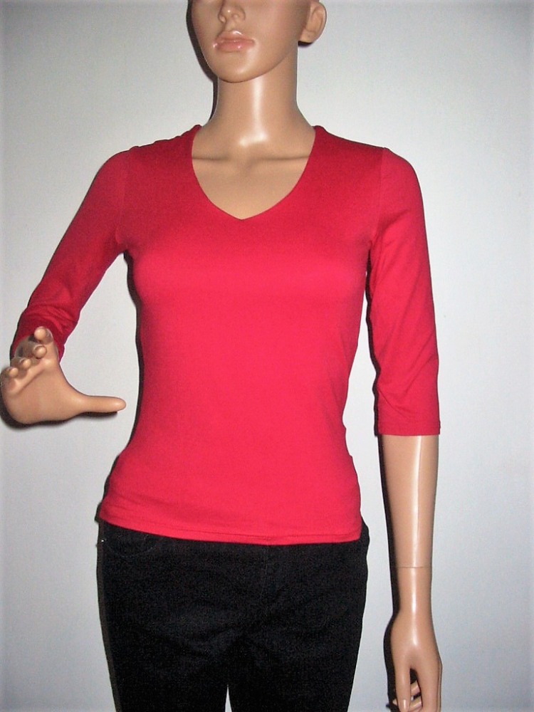 A Pimkie piros, háromnegyedes ujjú, a test vonalát szorosan követő felső remek példa erre. Kiváló minőségű anyaga, letisztult vonalvezetése együttesen garancia arra, hogy változatos szettek hosszú sorát állíthasd össze.
