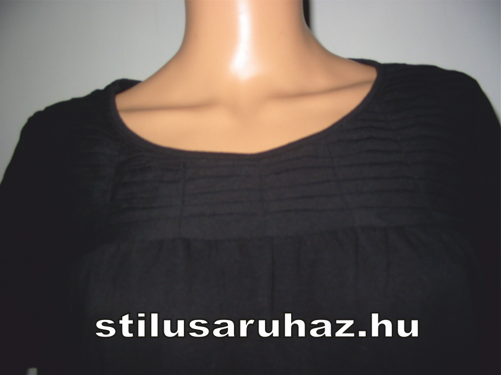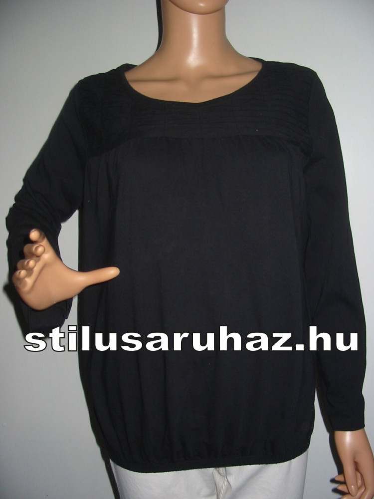 A 100% pamutból készült fekete, bő vonalú Since női felső puha kényelmet ígér a mindennapokhoz. Mutatós részlete a felsőnek elöl a dekoltázst körülölelő keskeny hajtások. Az utolsó hajtás alatt lévő apró csípések adják a tunika kényelmes bőségét, amelyet alul keskeny gumicsík fog össze.