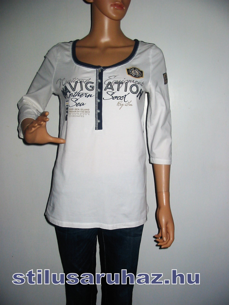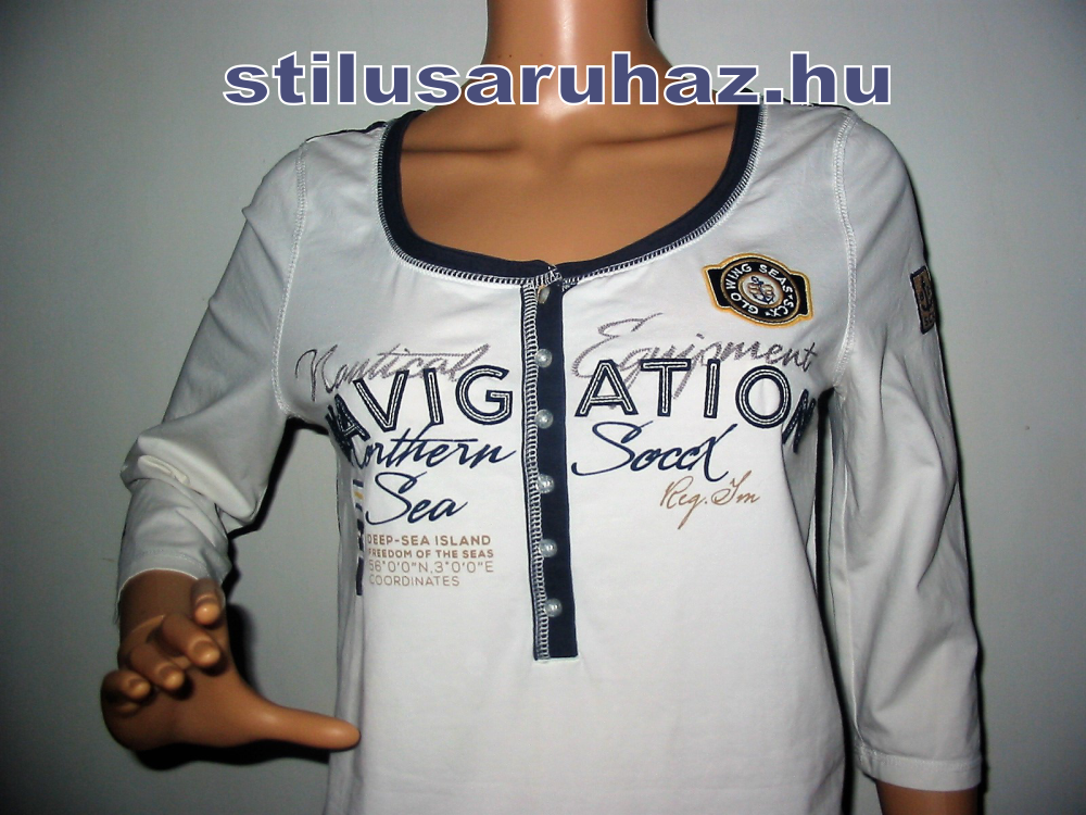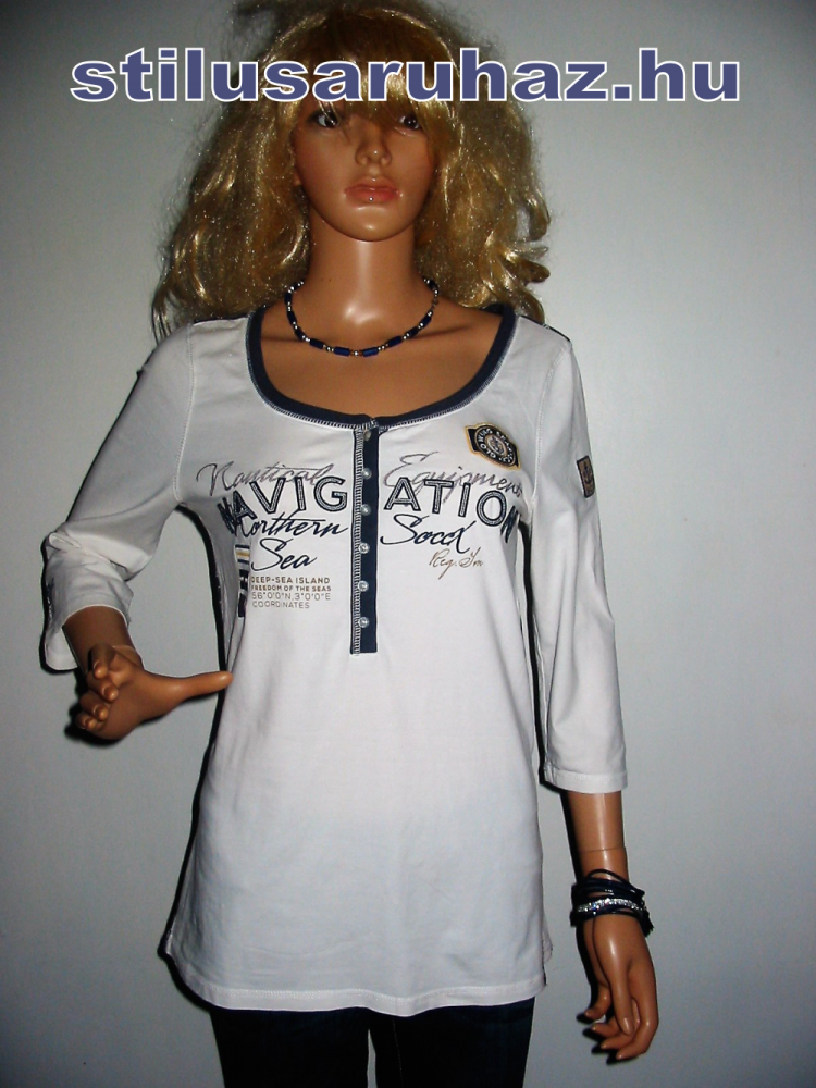 A sötétkék-fehér színpáros már önmagában is hordoz némi ünnepélyességet és eleganciát. Sportos stílust kedvelőknek remek ajánlat ez a kellemes, puha tapintású anyagból készült Soccx póló. A felső eleje és hátulja más-más külsőt kapott, ami egyedivé és különlegessé teszi a megjelenését. Az elején a különböző stílusú betűkből álló írások, hátulján pedig a sötétkék alapon futó sűrű fehér szöveg és középen egy meglehetősen hangsúlyos minta hívja fel a figyelmet a Soccx póló szemet vonzó megjelenésére. A póló stílusához illő kiegészítőkkel a sportosan elegáns megjelenés garantált.